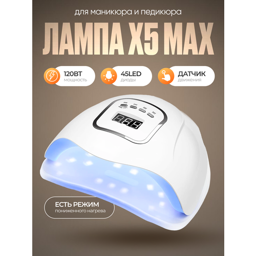 НАЙТИ ВЫГОДНЕЕ - Лампа для маникюра и педикюра Х5 Max 120W, для сушки ногтей, профессиональная