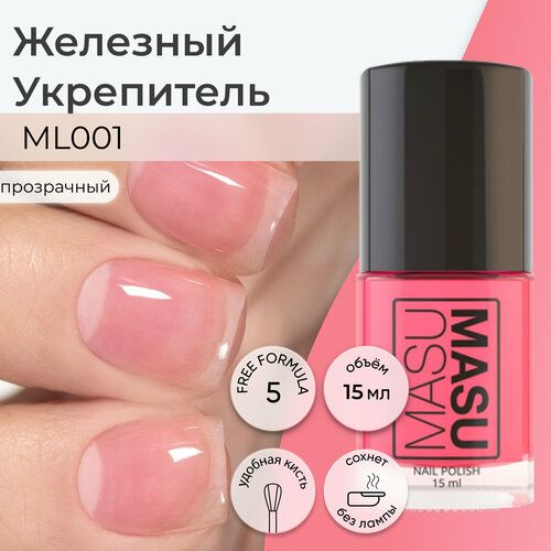 НАЙТИ ВЫГОДНЕЕ - Лаковая база MASU MASU, Железный Укрепитель, розовый полупрозрачный, 15 мл