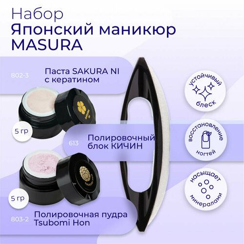 НАЙТИ ВЫГОДНЕЕ - Японский маникюр Masura (минеральная паста SAKURA NI, полировочная пудра Tsubomi Hon, Полировочный блок KICHIN)