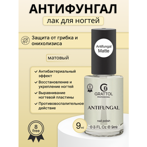 НАЙТИ ВЫГОДНЕЕ - Лак для ногтей от гибка и онихолизиса матовый - Grattol Antifungal Matte, 9 мл