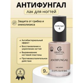 НАЙТИ ВЫГОДНЕЕ - Лак антифунгал для ногтей от грибка и онихолизиса, укрепление и восстановление - Grattol Antifungal 04, 9 мл