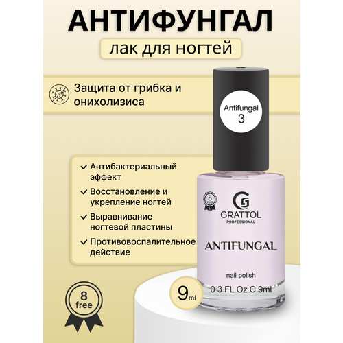НАЙТИ ВЫГОДНЕЕ - Grattol Antifungal 03 - Лак антифунгал для ногтей от грибка и онихолизиса, укрепление и восстановление, 9 мл