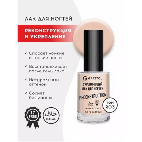 НАЙТИ ВЫГОДНЕЕ - Grattol Reconstruction 3 - Укрепляющий лак для ногтей, цвет телесный, Халяль, 9 мл
