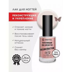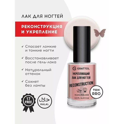 НАЙТИ ВЫГОДНЕЕ - Grattol Reconstruction Rose - Укрепляющий лак для ногтей, сушка без лампы, 9мл
