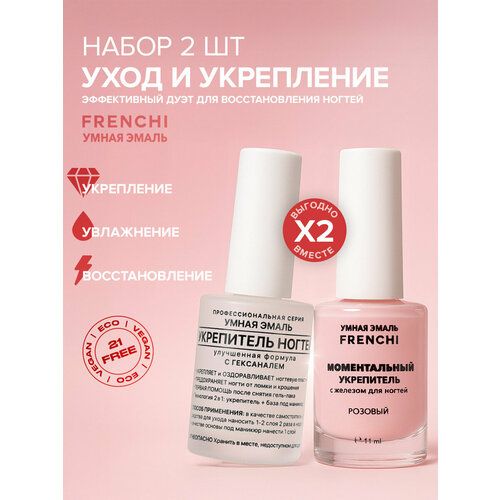 Набор для укрепления ногтей от Умной Эмали - это профессиональное средство для ухода за ногтями, которое включает в себя два продукта: Укрепитель для ногтей и Моментальный укрепитель.