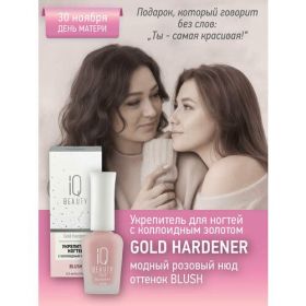 НАЙТИ ВЫГОДНЕЕ - Укрепляющий лак для ногтей IQ Beauty Gold Hardener Blush, с коллоидным золотом, 12.5 мл
