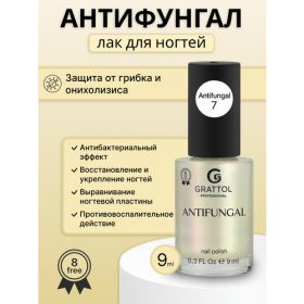 НАЙТИ ВЫГОДНЕЕ - Grattol Antifungal 07 - Лак антифунгал для ногтей от грибка и онихолизиса, укрепление и восстановление, 9 мл