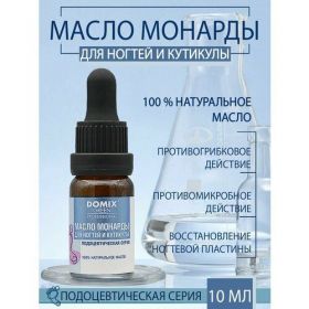 Масло монарды для восстановления ногтей и кутикулы от Domix - это натуральное средство, которое способствует росту здоровых ногтей и предотвращает присоединение грибка и вторичных инфекций. Оно обладает фунгицидным и бактерицидным действием, что делает его незаменимым помощником в уходе за ногтями и кутикулой. Масло монарды содержит эфирное масло и миндальное масло, которые обеспечивают противовоспалительное и антибактериальное действие. Продукт клинически протестирован и подходит для ежедневного применения. Масло монарды не содержит формальдегида, что делает его безопасным для использования даже на чувствительной коже. Оно проверено дерматологами и не тестируется на животных, что подтверждает его высокое качество и безопасность. Способ применения масла прост и удобен: втереть его в ногти и кожу околоногтевого валика. Объем масла составляет 10 мл, а вес - 40 г.