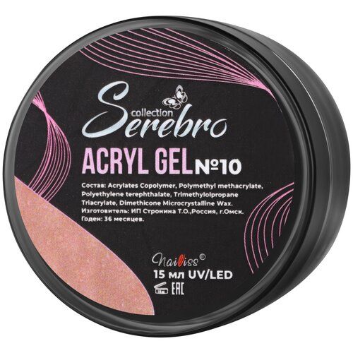 НАЙТИ ВЫГОДНЕЕ - Serebro акригель Acryl Gel для моделирования с шиммером, 15 мл, №10