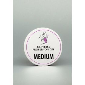 Universe Profession Gel Medium – Однофазный гель для наращивания ногтей, камуфлирующий, телесно-бежево-розового натурального цвета. Только для профессионального использования. Гель среднегустой, хорошо самовыравнивается. Отлично работает с другими гелями и акрилами. Гель имеет хорошее сцепление с типсами и натуральными ногтями. Идеален в технике без опила. Отсутствие акриловой кислоты из состава. Не печет в лампе. Время полимеризации до 30 секунд как в LED/ 3мин. UV 36W-лампах. Гель для наращивания ногтей. 50мл.