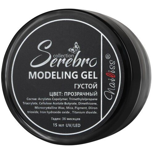 НАЙТИ ВЫГОДНЕЕ - Гель для наращивания и моделирования ногтей Serebro густой сверхпрочный, прозрачный, 15 мл