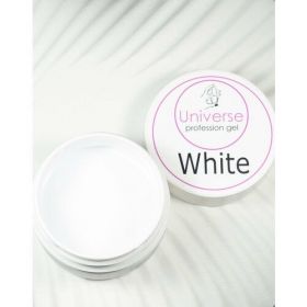 Universe Profession Gel WHITE – Трехфазный гель для наращивания ногтей, белого цвета. Только для профессионального использования. Гель среднегустой, хорошо самовыравнивается. Отлично работает с другими гелями и акрилами. Гель имеет хорошее сцепление с типсами и натуральными ногтями. Идеален в технике без опила. Не печет в лампе. Время полимеризации до 30 секунд как в LED/ 3мин. UV 36W-лампах. Гель для наращивания ногтей 20мл