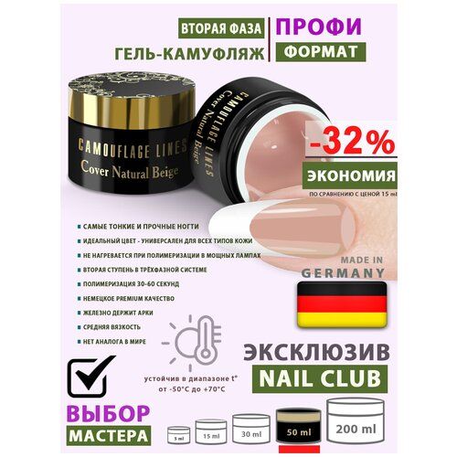 НАЙТИ ВЫГОДНЕЕ - Nail Club professional Камуфлирующий гель для ногтей CAMOUFLAGE LINES, Cover Natural Beige, 50 мл.