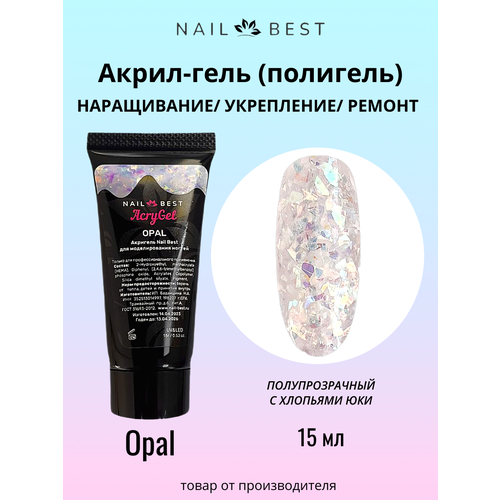 НАЙТИ ВЫГОДНЕЕ - Полигель для наращивания ногтей Nail Best AcryGel Opal, однофазный, с блестками, 15 гр