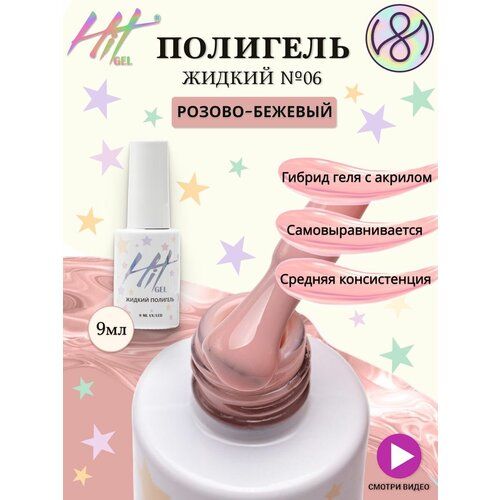 Полигель для наращивания ногтей, жидкий №06, 9 мл 102063651885