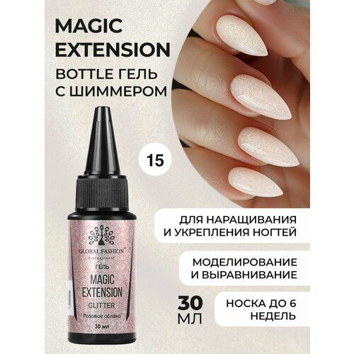 НАЙТИ ВЫГОДНЕЕ - Global Fashion Камуфлирующий жидкий трёхфазный гель для наращивания и укрепления ногтей Magic Extension с шиммером, 30 мл / №15 розовое облако