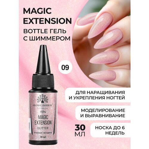 НАЙТИ ВЫГОДНЕЕ - Global Fashion Камуфлирующий жидкий трёхфазный гель для наращивания и укрепления ногтей Magic Extension с шиммером, 30 мл / №09 розовая гвоздика