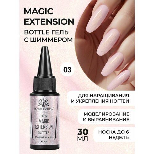 НАЙТИ ВЫГОДНЕЕ - Global Fashion Камуфлирующий жидкий трёхфазный гель для наращивания и укрепления ногтей Magic Extension с шиммером, 30 мл / №03 розовый жемчуг