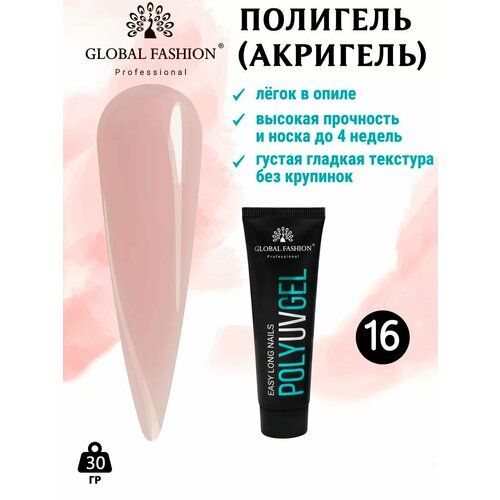 НАЙТИ ВЫГОДНЕЕ - Global Fashion Полигель (акригель, акрилатик) для наращивания, ремонта и укрепления ногтей, 30 гр / 16 персиковая роза