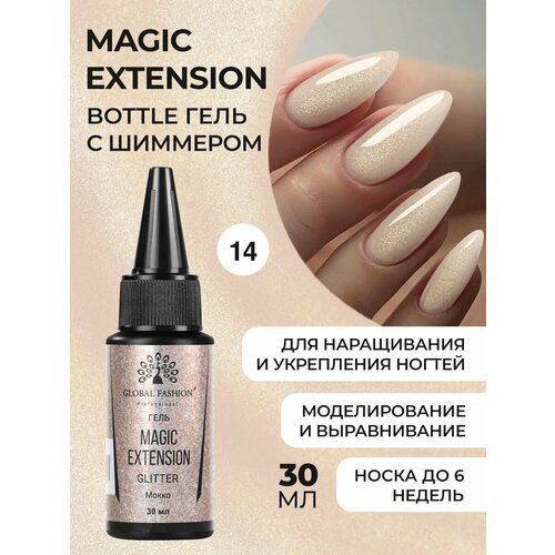 НАЙТИ ВЫГОДНЕЕ - Global Fashion Камуфлирующий жидкий трёхфазный гель для наращивания и укрепления ногтей Magic Extension с шиммером, 30 мл / №14 мокко
