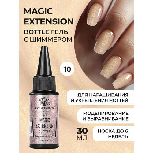 НАЙТИ ВЫГОДНЕЕ - Global Fashion Камуфлирующий жидкий трёхфазный гель для наращивания и укрепления ногтей Magic Extension с шиммером, 30 мл / №10 карамельный латте