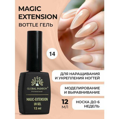 НАЙТИ ВЫГОДНЕЕ - Global Fashion Камуфлирующий жидкий трёхфазный гель во флаконе с кистью для наращивания и укрепления ногтей Magic Extension, 12 мл / №14 мокко