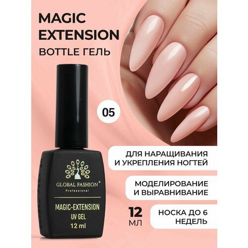 НАЙТИ ВЫГОДНЕЕ - Global Fashion Камуфлирующий жидкий трёхфазный гель во флаконе с кистью для наращивания и укрепления ногтей Magic Extension, 12 мл / №05 розовая пудра