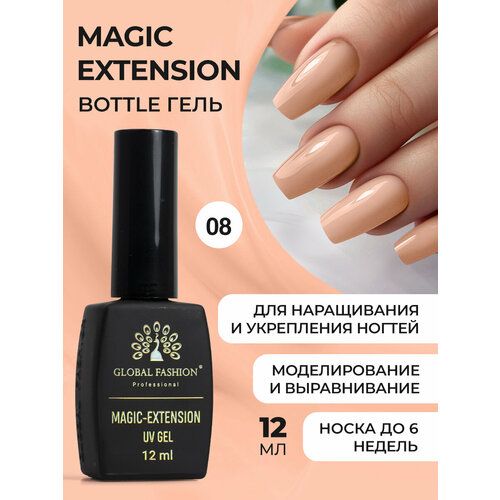 НАЙТИ ВЫГОДНЕЕ - Global Fashion Камуфлирующий жидкий трёхфазный гель во флаконе с кистью для наращивания и укрепления ногтей Magic Extension, 12 мл / №08 персиковый крем