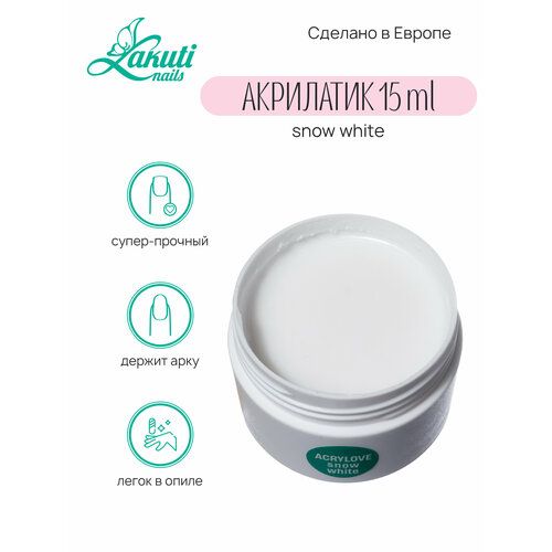 НАЙТИ ВЫГОДНЕЕ - Lakuti. Acrylove snow white - 15 гр. Акрилатик (Акригель, полигель)