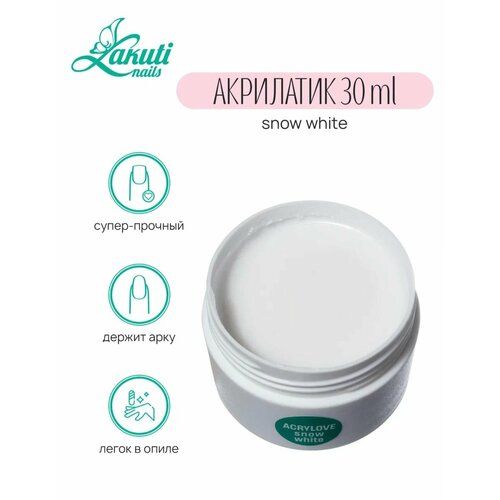 НАЙТИ ВЫГОДНЕЕ - Lakuti. Acrylove snow white - 30 гр. Акрилатик (Акригель, полигель)