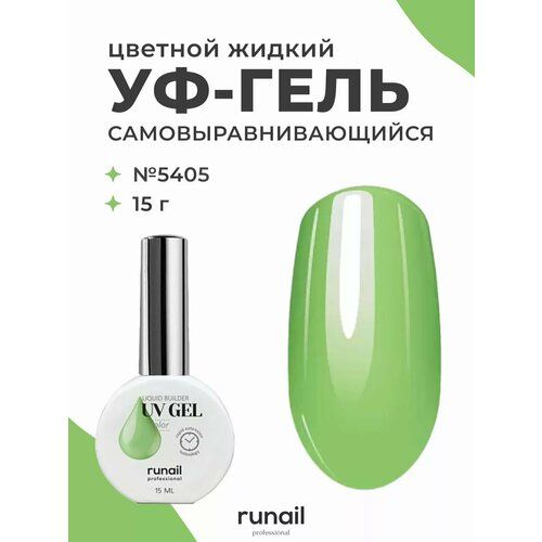Жидкий самовыравнивающийся цветной уф-гель от RuNail Professional - это средство для моделирования, выравнивания и укрепления ногтевой пластины.