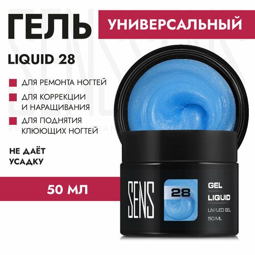 НАЙТИ ВЫГОДНЕЕ - Гель SENS GEL, для наращивания и укрепления ногтей, голубой с шиммером, оттенок 28, 50 мл.