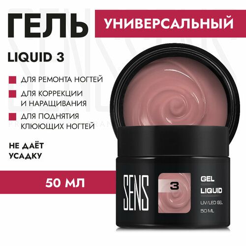 НАЙТИ ВЫГОДНЕЕ - Универсальный жесткий гель SENS GEL 03, для ногтей, укрепление, бежевый, средне-густой, 50 мл