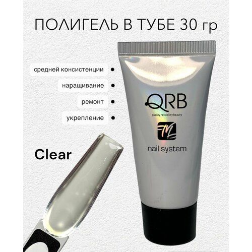НАЙТИ ВЫГОДНЕЕ - Полигель акригель QRB для наращивания и моделирования ногтей № 5 прозрачный clear, 30 гр