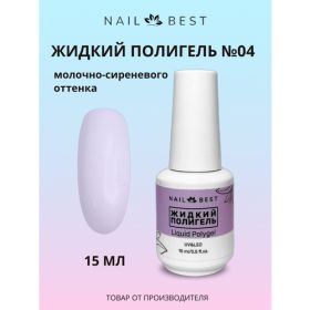 Liquid Polygel №04, 15 мл / Жидкий полигель молочно-сиреневого оттенка, средне-густой консистенцией и высокой степенью вязкости, не дает усадку и отлично самовыравнивается, имеет липкий слой. Слабокислый материал с показателем PH 5.