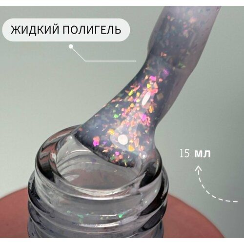 НАЙТИ ВЫГОДНЕЕ - Жидкий полигель для ногтей № 2 молочный с хлопьями QRB nail system