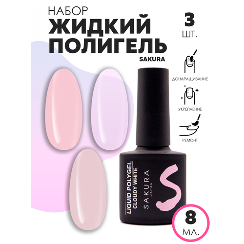 НАЙТИ ВЫГОДНЕЕ - Жидкий полигель для укрепления и наращивания ногтей Sakura, набор 3шт, 8мл