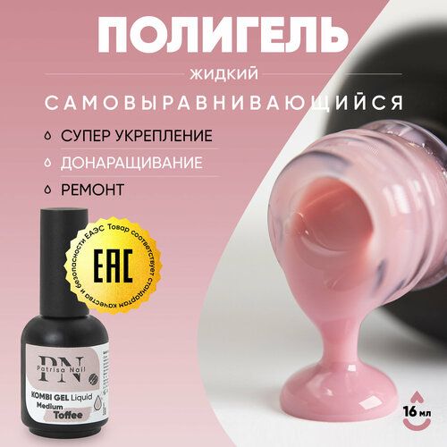 НАЙТИ ВЫГОДНЕЕ - Жидкий полигель для наращивания ногтей Kombi Gel Liquid Medium Toffee дымчато-розовый, 16 мл