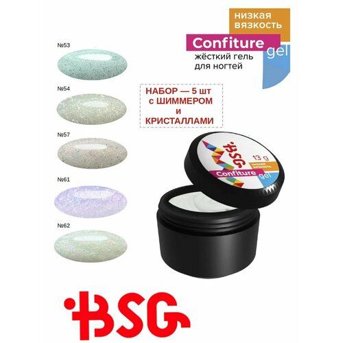 НАЙТИ ВЫГОДНЕЕ - Набор гелей с шиммером и кристалами низкая вязкость, 5 шт