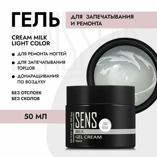 Гель для моделирования ногтей Гель Крем Лайт Sens 50 гр – это многофункциональный скульптурный гель для ремонта ногтей. Акригель суперпрочный и при запечатывании защищает свободный край от расслаивания. Наш скульптурный гель для ремонта ногтей достаточно вязкий, что позволяет с легкостью отремонтировать или донарастить ноготь. С ним вы легко сможете запечатывать торцы, восстанавливать сбитые уголки и сколы. Работать с ним можно сразу на 4-5 пальцах, потому что он не течет по форме, что позволит значительно сократить время вашей работы, при этом не теряя качество покрытия. Цвет жидкой базы мы сделали еще более естественным, что соответствует натуральному цвету ногтя на подготовленную поверхность ногтя наносится гель: распределять его следует встык на торец. Чтобы густой гель для ногтей полимеризовался, его необходимо сушить в УФ-лампе 20-30 секунд. После того, как первый слой геля затвердел, по той же схеме наносится и второй слой, далее перекрываете базой Thin - сушим. Если требуется, совершаем опил и выкладываем гель или гель лак по классической технике. Сушим. Благодаря крем-гелю можно менять форму, доращивать длину на 1 или 2 деления. Это большая экономия времени и форм. А главное идеальный результат как сразу после процедуры-идеальный красивый маникюр, так и в процессе носки - все клиенты отмечают надежность и качество торцов Порадуйте себя и своих клиентов качеством и скоростью исполнения работы, а ТМ Sens Вам в этом поможет. Фото и видео от производителя уникальны. Производство Россия