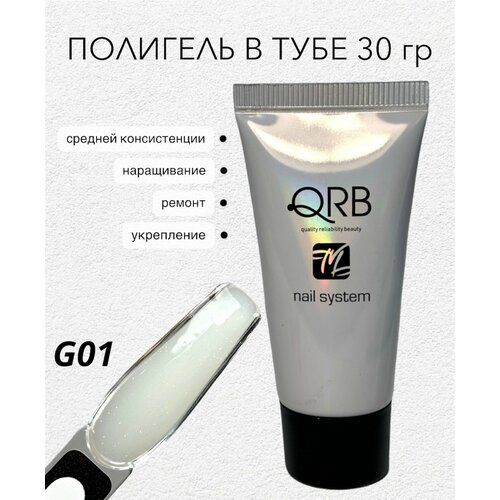 НАЙТИ ВЫГОДНЕЕ - Полигель акригель в тубе QRB для наращивания и моделирования ногтей № G01 молочный с шиммером, 30 гр
