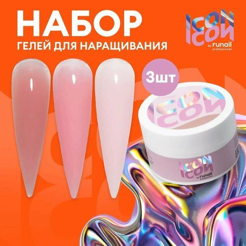 НАЙТИ ВЫГОДНЕЕ - Набор гель для наращивания и моделирования ногтей 3 шт. х 15 г моделирующих геля ICON by runail professional №1084М
