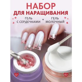 1) Гель для наращивания ногтей, моделирования и дизайна Romantic Gel Lovers - прозрачный гель с розовыми и глянцевыми белыми сердцами.