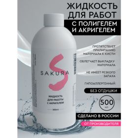 Акриловый гель-жидкость Acrylic gel liquid Sakura — это идеальное средство для работы с акриловым гелем. Она предотвращает прилипание материала к кисти, что значительно упрощает процесс моделирования. Объем 500мл.