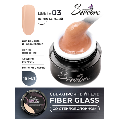 НАЙТИ ВЫГОДНЕЕ - Гель для наращивания ногтей Serebro Fiber glass №03, со стекловолокном, 15 мл.