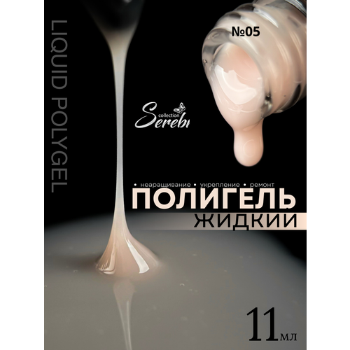 НАЙТИ ВЫГОДНЕЕ - Жидкий полигель для наращивания ногтей Serebro №05, бежевый, 11 мл.