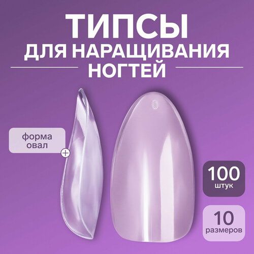 НАЙТИ ВЫГОДНЕЕ - Типсы для наращивания ногтей, 100 шт, форма балерина, полное покрытие, в контейнере, прозрачные