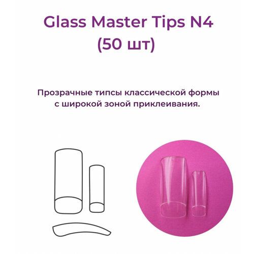 Типсы Glass Master Tips №4 отличаются классической формой и прозрачной бесцветной текстурой. Они имеют широкую контактную зону, что обеспечивает надежное и прочное приклеивание.