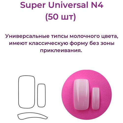 Типсы Super Universal Tips №4 выполнены в молочном цвете, который легко сочетается с любым оттенком кожи и подходит для любого образа.