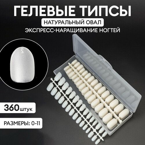 НАЙТИ ВЫГОДНЕЕ - Гелевые типсы для экспресс наращивания натуральный овал (размеры 0-11) , 360 шт. №7631